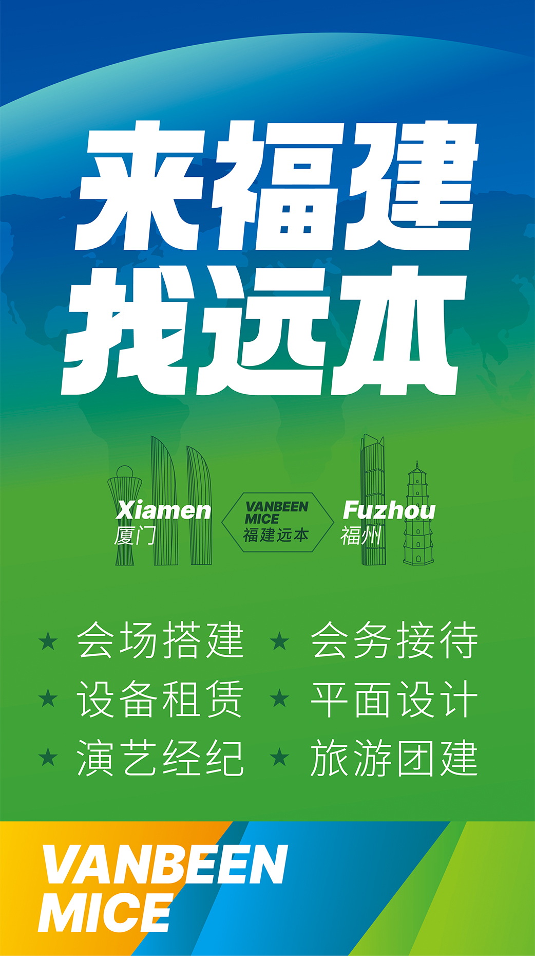 廈門遠本成立于2013年,是一家集策劃設(shè)計、落地搭建以及會議接待等全案服務(wù)的DMC公司。公司擁有LED屏幕、燈光音響、木作工廠等專業(yè)舞美設(shè)備,擁有一批專業(yè)穩(wěn)定的策劃設(shè)計和會務(wù)接待團隊,能夠快速、精準(zhǔn)地為客戶提供優(yōu)質(zhì)的策劃、設(shè)計、搭建、接待等服務(wù)。公司已服務(wù)過華為、阿里、麥當(dāng)勞、中國移動、??松梨?、興業(yè)銀行、招商銀行、華潤三九、齊魯制藥、萬邦制藥等國內(nèi)外知名企業(yè),并成功入選中國國旅、中旅、康輝國旅、錦江國旅、中智商展、墨馬傳媒等國內(nèi)知名PCO公司供應(yīng)商庫。